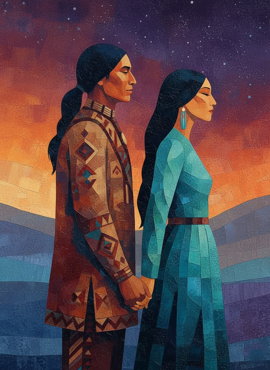 We Walk as One Hand in hand beneath the fading sun, They carry the weight of stories stitched into their garments and etched into their blood. No words are needed— The land already knows their vows, The stars have memorized their names. Two hearts, one journey, rooted in the same earth, guided by the same sky— love, not as possession, But as a shared path toward tomorrow.