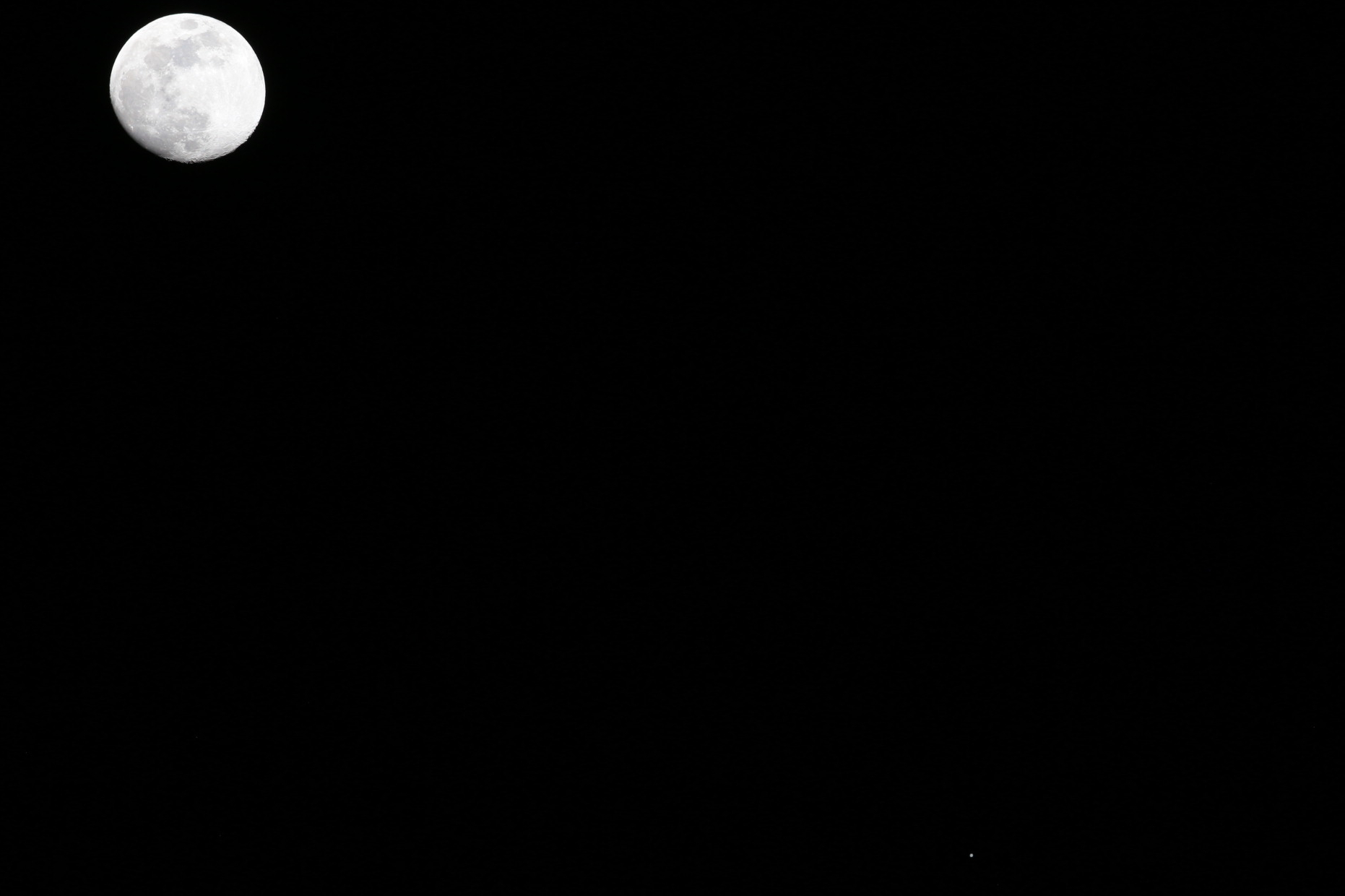 A waxing-gibbous Moon dances with the planet Jupiter tonight on its way to becoming the Snow Moon of 2026 on February 1st, crossing the zenith in the constellation Gemini. #GibbousMoon #SnowMoon #Moon #Jupiter #Planet #Gemini #Zenith #NightSky #Astronomy